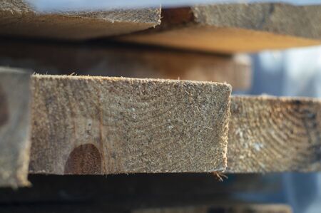 Detail of wooden planks. Wooden pallets. Wood. Lumber. A stack of new wooden planks in the lumber industry