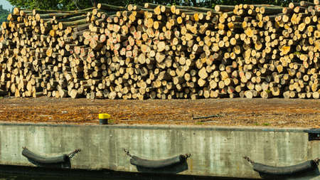 Wooden logs in the port of Rotterdam, Netherlands.