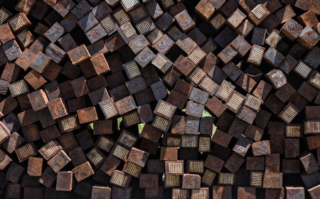 Pile of old wooden railway sleepers.