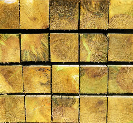 Stacked wooden beams in the warehouse