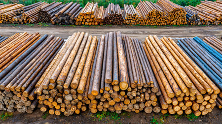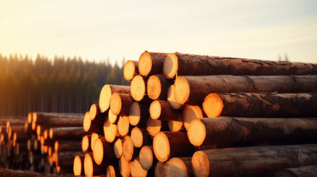 A bustling sawmill is a hub of the timber industry, where raw logs, a valuable forest resource, await transformation From lumber for construction to wood for woodworking projects, the sawmill is a vital source for timber products The rhythmic hum of machinery and the scent of fresh wood fill the AI Generative