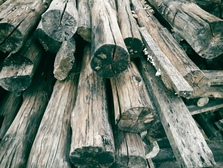 Closeup of logs of trees in nature. a lot of cutted logs.