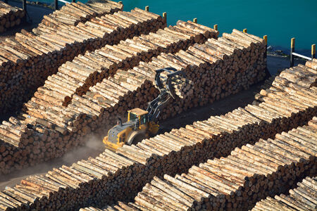 pile of logs at the port ready for loading to ships.