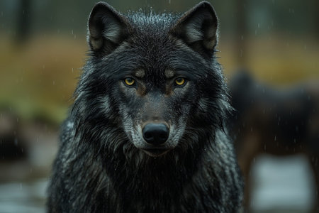 Wolf head rain closeup. look nose. Generate AI