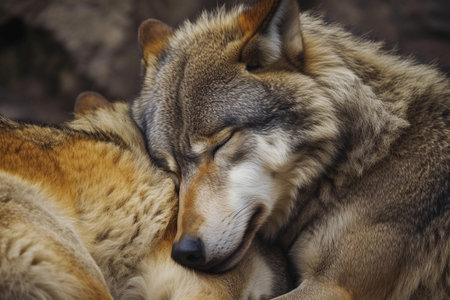 Wolves in a heartfelt embrace showing their social nature.