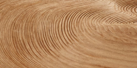 Close-up shot of wooden texture showcases the mesmerizing rings and grooves formed over years. The natural colors blend harmoniously, highlighting the beauty of wood. This unique design captures the essence of nature's craftmanship.