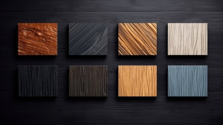 This image showcases a collection of wooden and stone materials with diverse textures and colors, perfect for inspiring design ideas for home decor and projects.