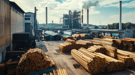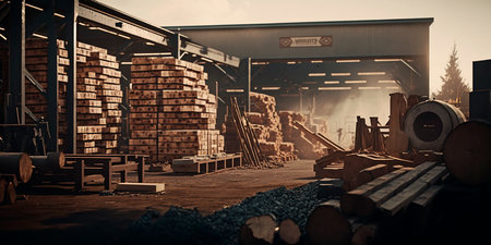 A bustling sawmill is a hub of the timber industry, where raw logs, a valuable forest resource, await transformation From lumber for construction to wood for woodworking projects, the sawmill is a vital source for timber products The rhythmic hum of machinery and the scent of fresh wood fill the AI Generative