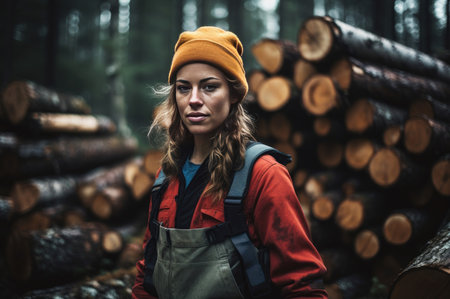 Outdoorsy Logger woman forest. Machine beauty female. Generate AI