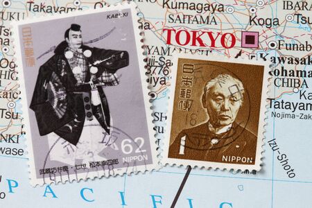 Japan mail postage stamp with a kabuki warrior.
