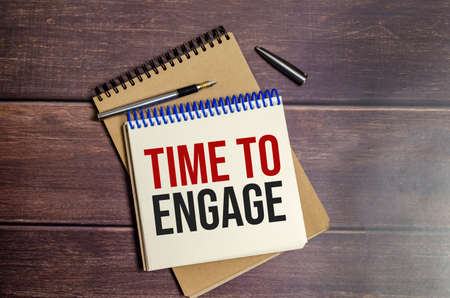 TIME TO ENGAGE words on notebook on wooden background