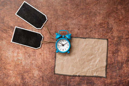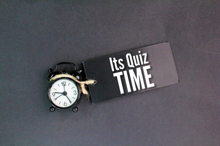 an alarm clock and a paper tag with the words Its Quiz Time. the concept of answering quizzes or quiz game
