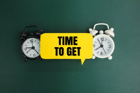 alarm clock and conversation bubble with the word time to get. promotion concept.