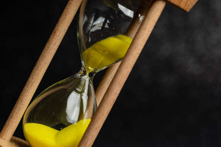 Sand running through the hourglass measuring the passing time in a countdown to a deadline, Hourglass time concept for rush and run out of time., business deadline.