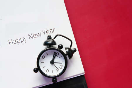 Calendar 2022 and alarm clock on office table. to-do list for next year.