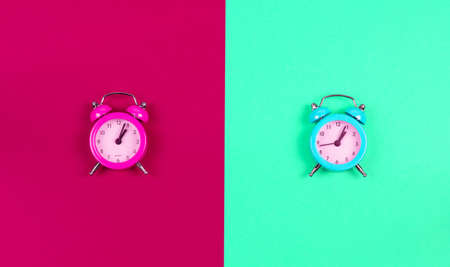 Clock switch to summer time and to winter time. Set of alarm clocks