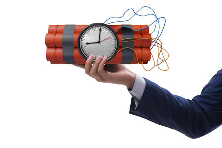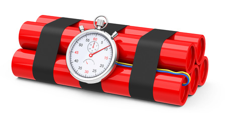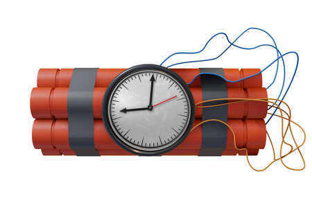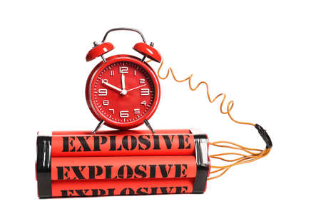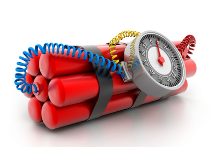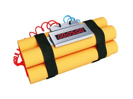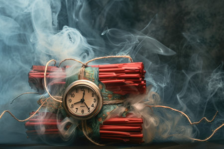 a time bomb, a bundle of red sticks with a clock attached and wires wrapped around it. There's smoke around it, which creates a sense of urgency or impending danger