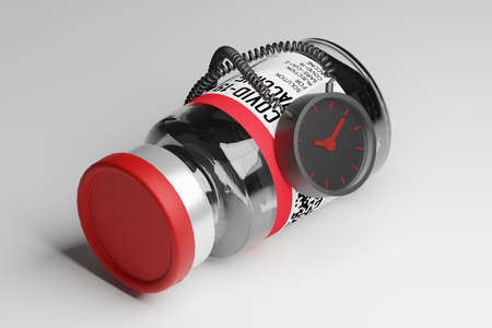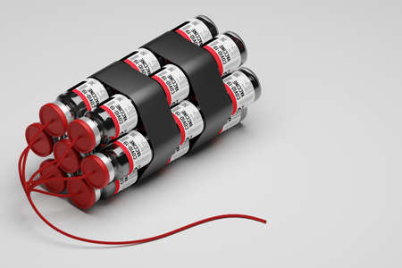 Isometric 3D rendering Dynamite destruction Covid-19 vaccine bottle, Efficacy Vaccination Campaign for Herd immunity protection from pandemic concept design white background, copy space