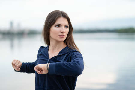 Sports and healthy lifestyle : Brunette girl doing sports exercises.