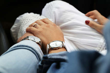 top view close-up shot of wristwatch on arm of woman