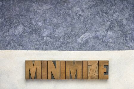 minimize word in vintage letterpress wood type against handmade textured amate paper, simplicity, minimalism and lifestyle concept
