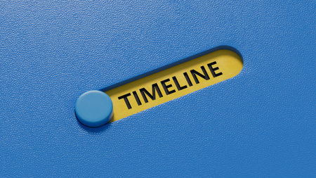 slide switch with text TIMELINE. financial market. financing.close up of slide switch,Business Concept.3D rendering on blue background.