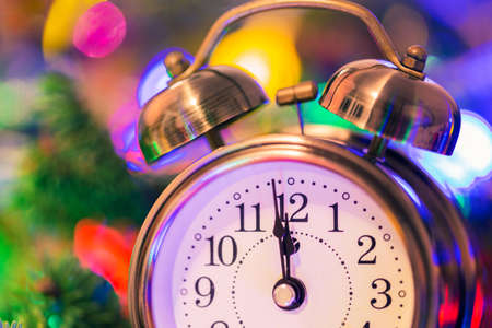 Background New Year conceptual image with clock showing five minutes to twelve