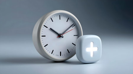 White clock and white cross on grey background. 3D rendering.ai generated