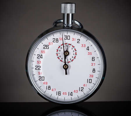close-up of a stopwatch isolated on gray background