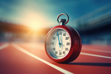 A red stopwatch strategically placed on top of a tennis court, ready to time every movement accurately, Close-up of a stopwatch indicating the finish of a race, AI Generated