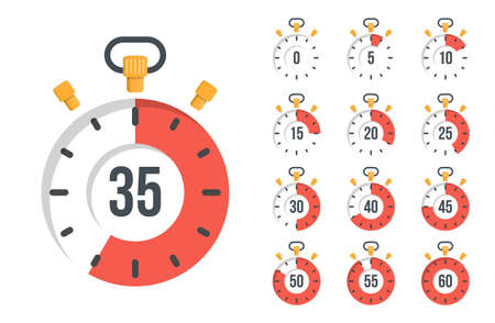 Stopwatch with different time, flat design, vector eps10 illustration