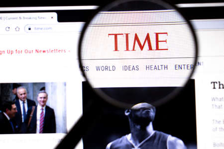 Los Angeles, California, USA - 25 January 2020: TIME website page in browser on laptop screen for illustration of article, Illustrative Editorial.