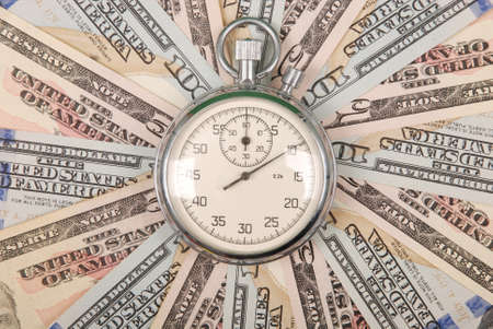 mechanical stopwatch on the background of dollars. Part time accuracy for business. business and finance time.