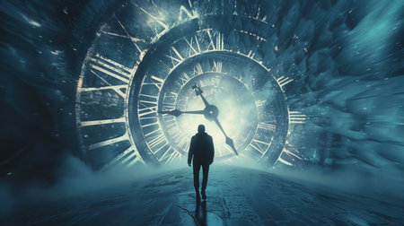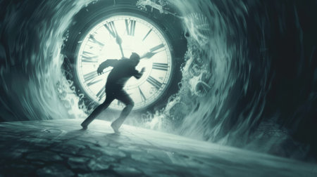 A person trapped in a time loop, symbolizing fear of time running out