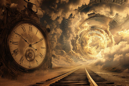 Time. An irreversible current flowing in only one direction, from past, through present to the future. Hourglass, seconds, clock, abstract eternity. Disappears and falls into oblivion. Generative AI.