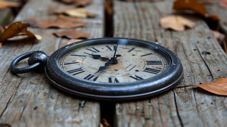 Ancient Rusted Pocket Watch on Autumn Leaves Symbolizing Times Impermanence and Material Transience