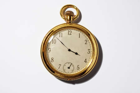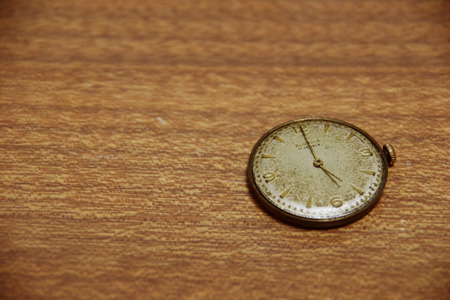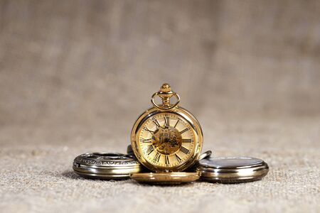 Antique old pocket watch dial close-up. Vintage hipster clock measuring time.