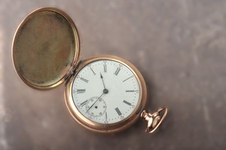Vintage pocket watch on the cracked concrete floor with the shadow