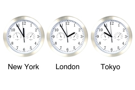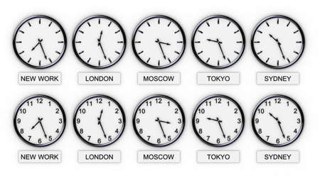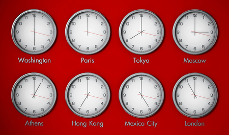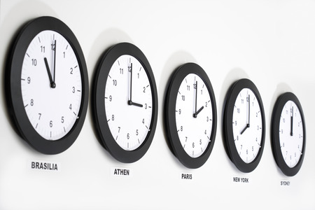 Clock and time zones on a white background