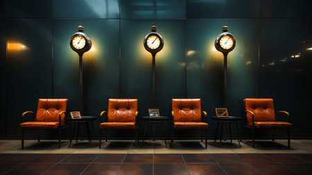 Row of chairs on waiting room or station. Generative AI.