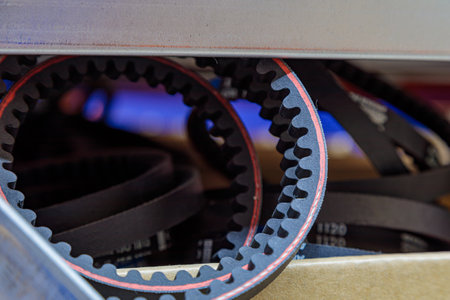 Toothed drive belt for a compressor in a box in stock. close-up. high quality photo