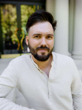 portrait of millennial young man with beard looking at camera