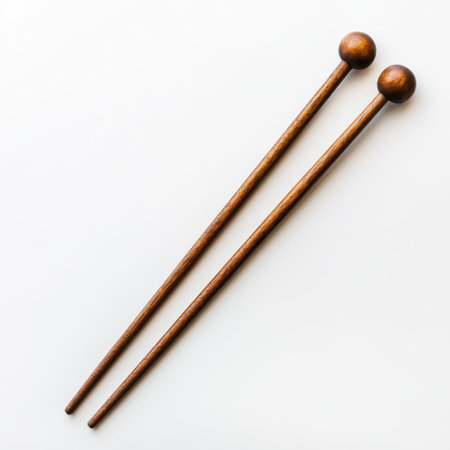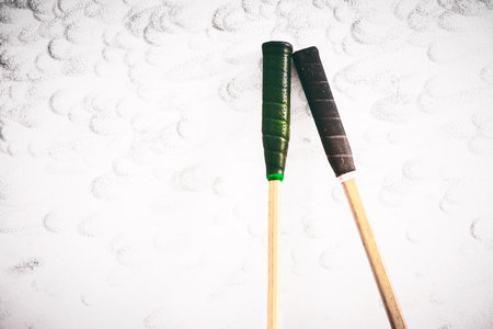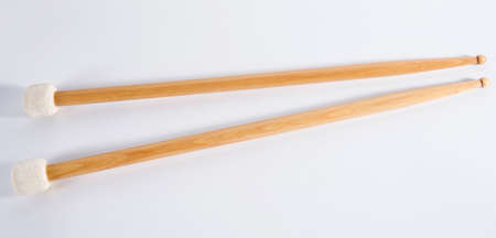 Different types of drumsticks for drum live music performance closeup. Percussion sticks in recording studio
