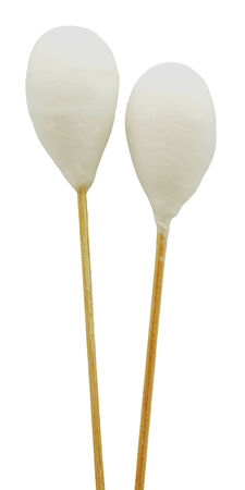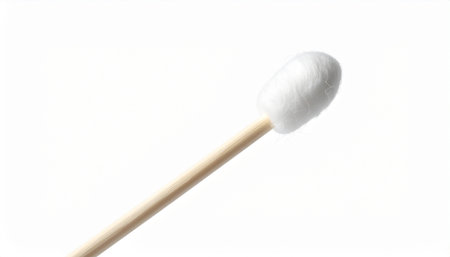 This close-up image features cotton swabs arranged on a glossy surface, showcasing their reflections against a soft, abstract background, emphasizing cleanliness and hygiene.