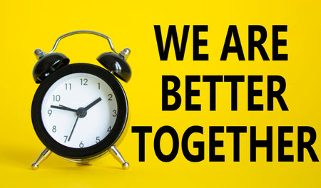 Beautiful yellow background with alarm clock with words we are better together. Copy space.