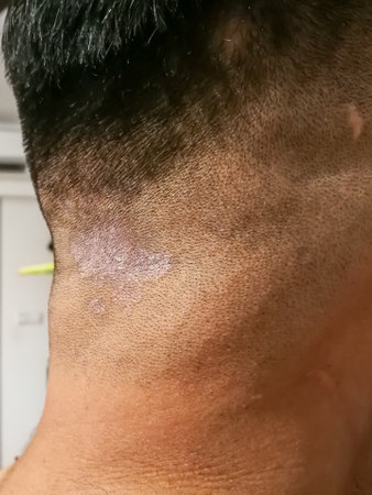 Closed up of ringworm also known as tinea on he scalp of the head. Dermatitis problem.