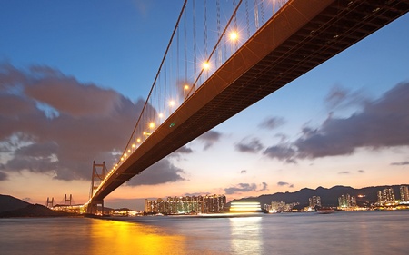 Hong Kong Bridge,It is beautiful Tsing Ma Bridge at sunset in Hong Kong