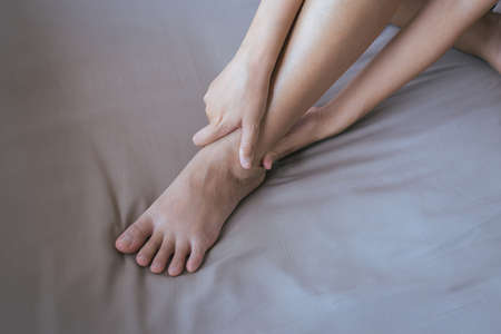 Woman having a ankle pain,Female feeling exhausted and painful,Concept for health