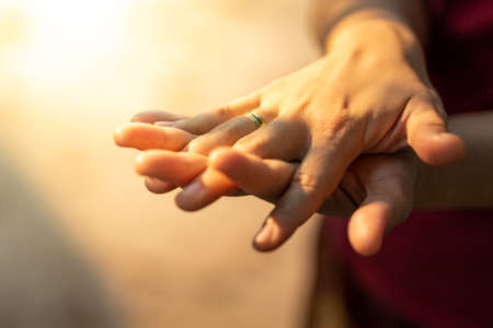 Female clamp hands feel pain, numbness caused by peripheral neuropathy or degeneration.