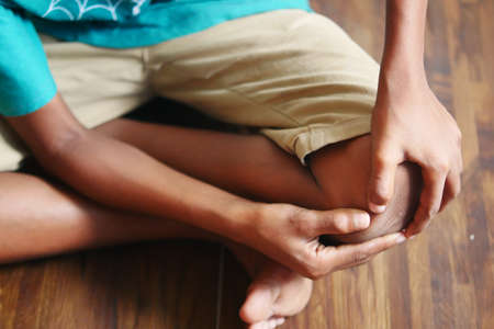 Close up on man suffering knee joint pain